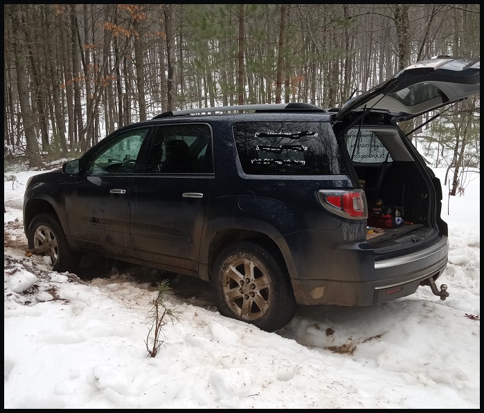 I last visited DaCabin the last week of December 2025. After that the snow was too deep to drive in, or worse, I might make it in but getting back out is more difficut - it's an uphill climb getting out. But after a two full months I got itchy to return so I had my cabin neighbor plow me a little parking spot at the end of the private road and Dog-O and I hiked in....