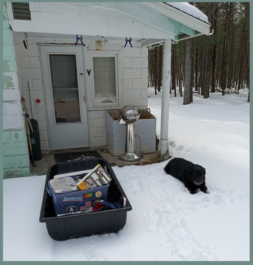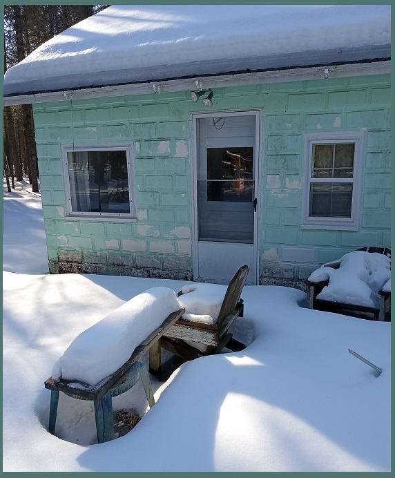 I last visited DaCabin the last week of December 2025. After that the snow was too deep to drive in, or worse, I might make it in but getting back out is more difficut - it's an uphill climb getting out. But after a two full months I got itchy to return so I had my cabin neighbor plow me a little parking spot at the end of the private road and Dog-O and I hiked in....