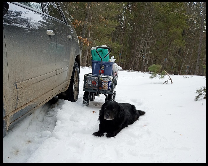 This time we didn't bring the ice sled so we had to hike in to retrieve my wagon, hike back out to the car, and hike in with the loaded wagon.